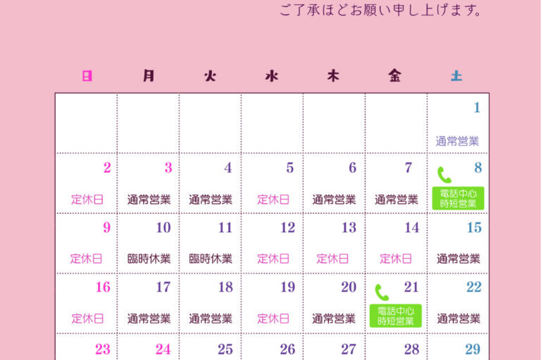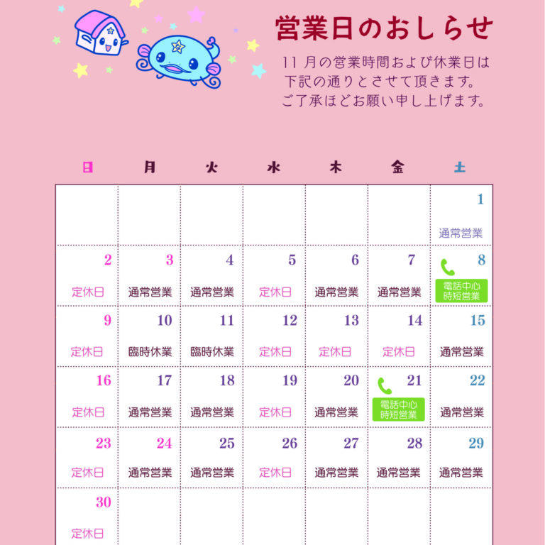 11月営業日のお知らせ