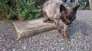 こんな目付きですが、目が合えばすり寄ってくる人懐こいネコです。