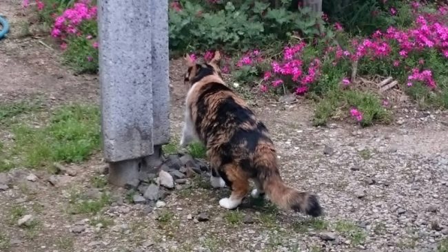 今日もミッコは積極的に外へ出ました。 強制ではなく、進んで出るようになったのは本当にうれしいことです。 トラコを見るとこんななりますが(笑) 全身の毛が逆立つほど嫌なんですね。 トラコがいない…
