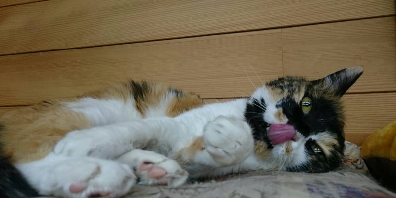 秋冬のミッコは、暖かい定位置でゆっくりくつろいでいます。