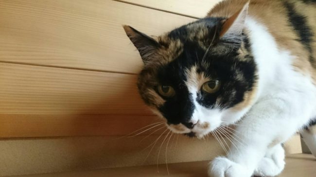 迫り来るミッコ。 午後に少し顔を出して、すぐ奥へ帰っていったもよう…。 基本的にはとぼけた顔で写ることが多いミッコですが、 時々キリッを通り越して、妙にかっこよく写ることがあっておもしろいです。  …
