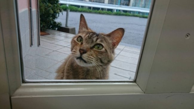 なんだか少しブリッコしているミッコです。 ここのところ、外へ出た途端にトラコと鉢合わせてしまうなど、なかなか気が休まらないご様子…。 困ったことに、最近のトラコは事務所に入ろうとしてきます。 …