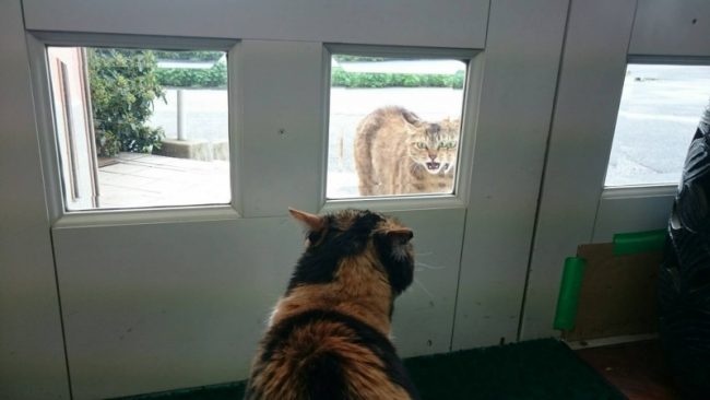 ミッコ、トラコに威嚇され中。 ものすごい声で応えます。 耳はペターン(笑) そしてミッコはゆっ…くり…… ゆっ……くり……… その場を立ち去りました。 見ていてびっくりするほどゆ…