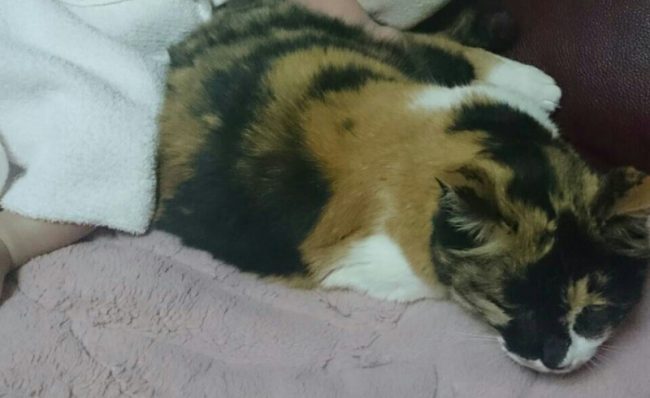 ミッコ、赤ん坊を目の前にし、フリーズ。 無関心を装いながらも、少し気を使っている様子でおもしろい。(笑) 背中を脚置き(フットスツール?)にされたりもしたとか。 それでもおとなしく見守ってくれていた、優しい…