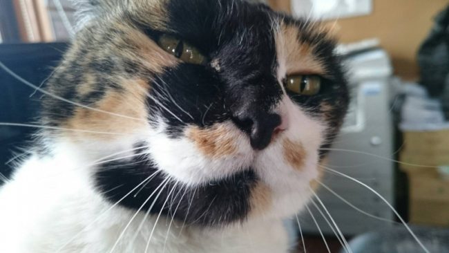 ミッコ、イヤそうな顔…(笑) 社長が撮影すると、ミッコはどうも目付きが悪くなります。 一番遊んでいる間柄なので、もはやきょうだいのような関係なのでしょう。 目付きが直りません(笑)  …