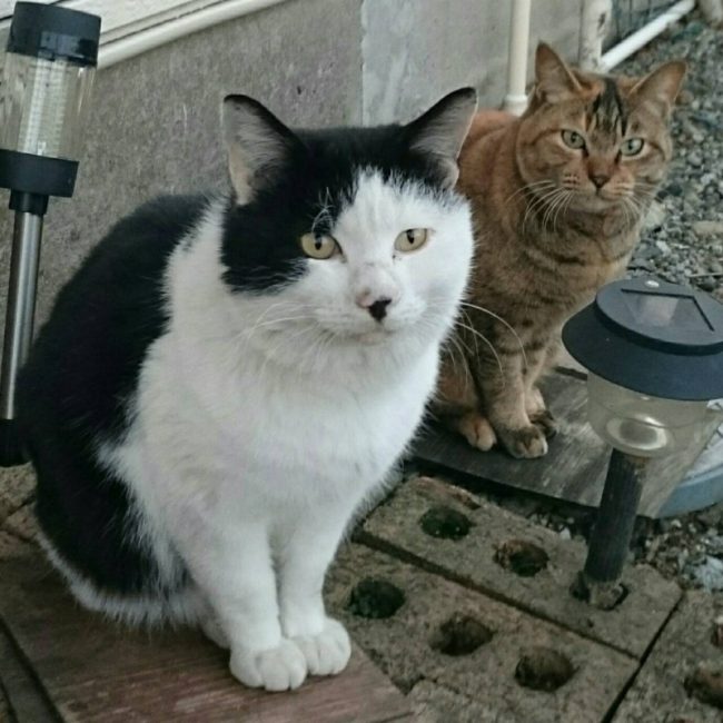 のらネコたち。 寒さのせいで毛が膨れてると思いましたが、しっかりと肥えている様子。 トラコなんてもう顔までデップリで…楕円形になっています。(笑) のらネコは、もう一匹いるんですよ。 クロです。 なかなか撮…